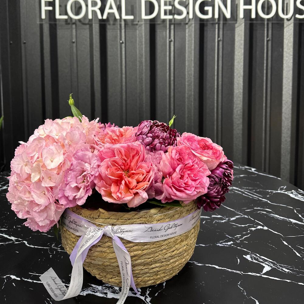 “Атлас☁️” – цветочная композиция с зефиром в деревянном ящике
