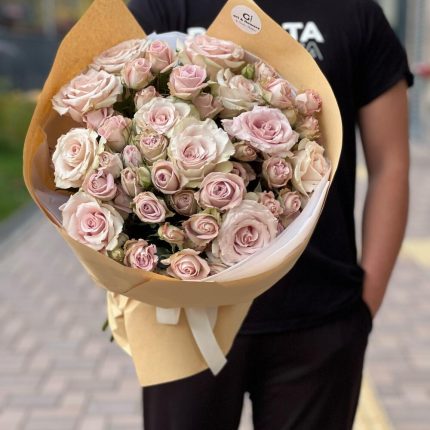 Евро-Букет из Пионовидных Роз + открытка ручной работы в подарок