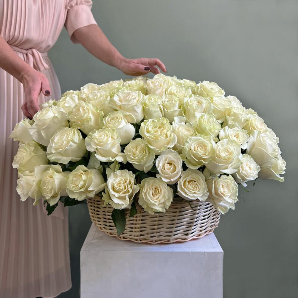 Корзина со 101 белой розой