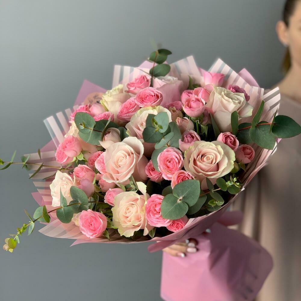 Кустовые розы, Лизиантусы, Розы, Сухоцвет