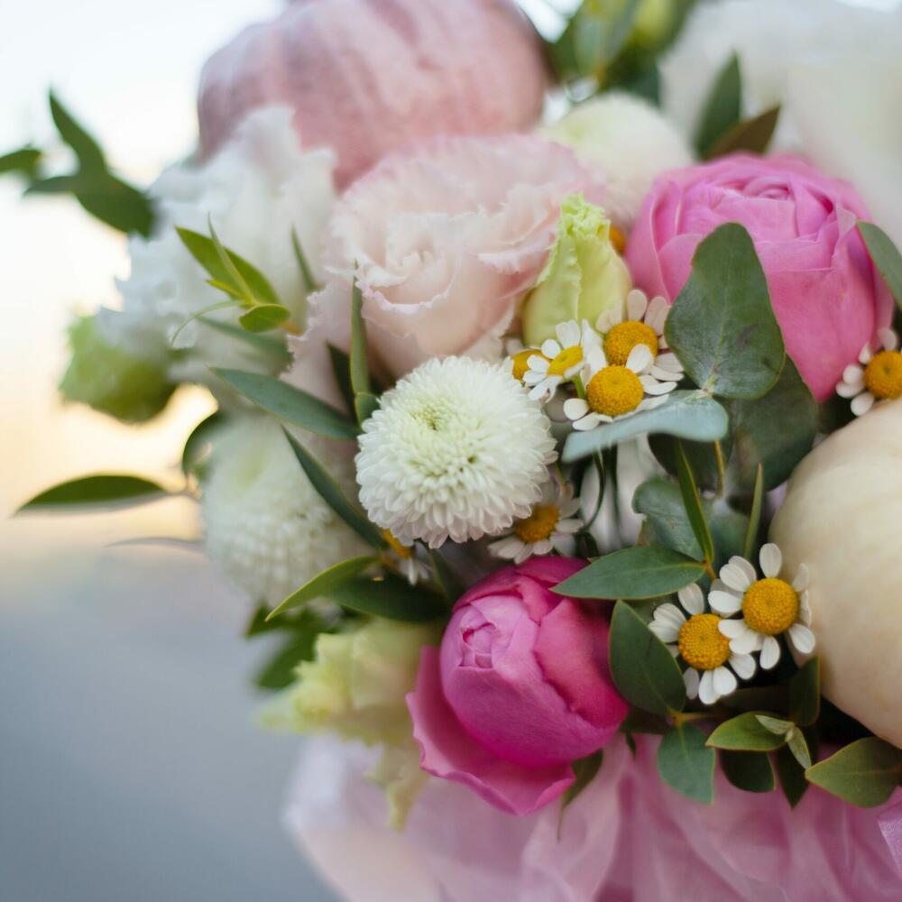 Гвоздики, Кустовые розы, Лизиантусы, Пионовидные розы, Розы