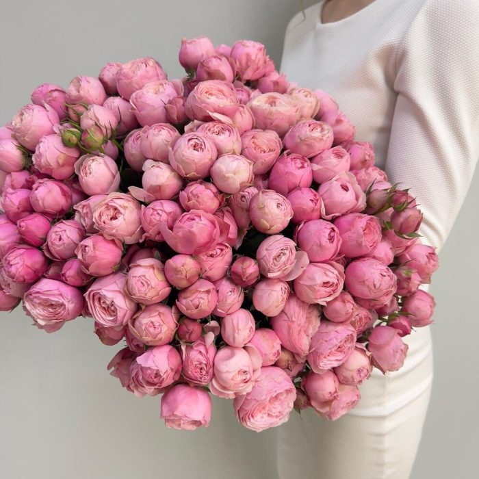 Сильвия Пинк красиво и с любовью упакованных в классный букет передадут настроение праздника своей обладательнице. Оттенок роз может немного отличаться.Silvia pink – шикарная кустовая пионовидная роза, по приятной и вкусной цене – нет аналогов этому предложению и не будет. И нет аналогов этому сорту. Эксклюзивная Роза премиум класса.Кустовая пионовидная Роза , сорт Silvia Pink, цвет : розовый.Высота : 40-50 см, лёгкий аромат.Кол-во цветков на стебле: 3-5 шт.Устойчивость к жаре : низкаяВесь цветок свежий, проходит контроль качества.