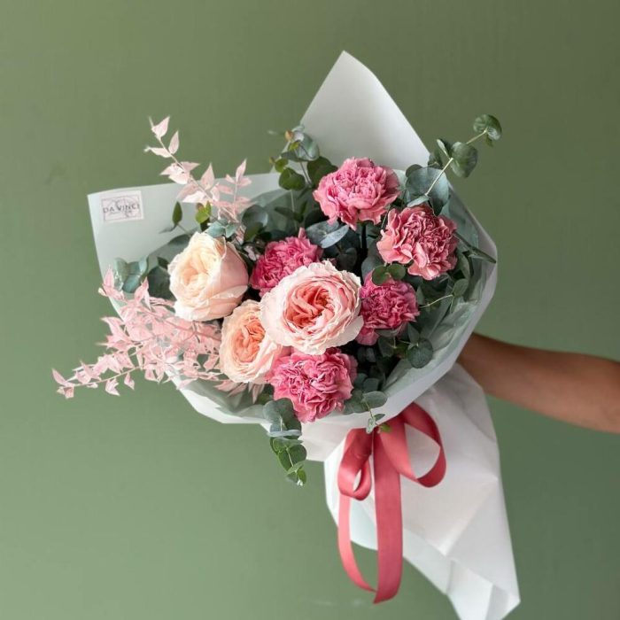 Гвоздики, Кустовые розы, Пионовидные розы, Розы