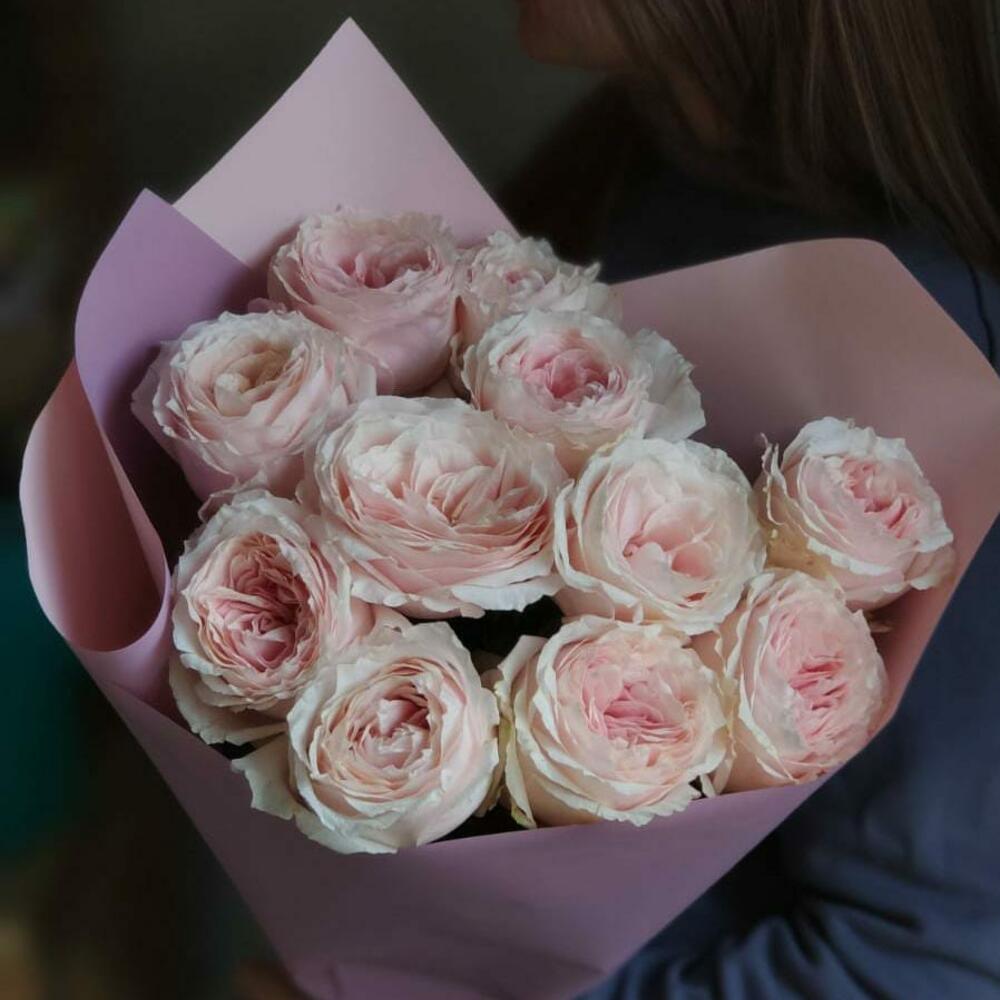 11 садовых роза сорта Tsumugi (Тсумуги) в моно-букетеСадовая роза это про тончайшие кружевные лепестки и потрясающе красивое раскрытие бутонаБукет оформлен упаковкой и атласными лентами