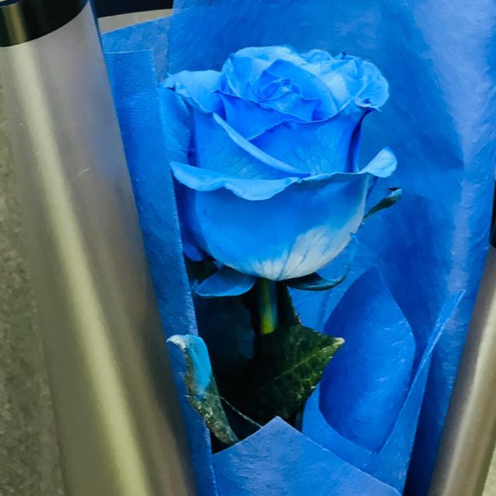 Атласная лента – 1 шт.Синяя роза – 1 шт.Матовая упаковка – 1 шт.