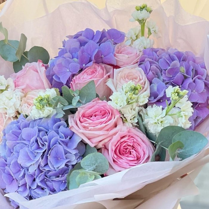 Букет нежный микс с эвкалиптом и пионовидными розами