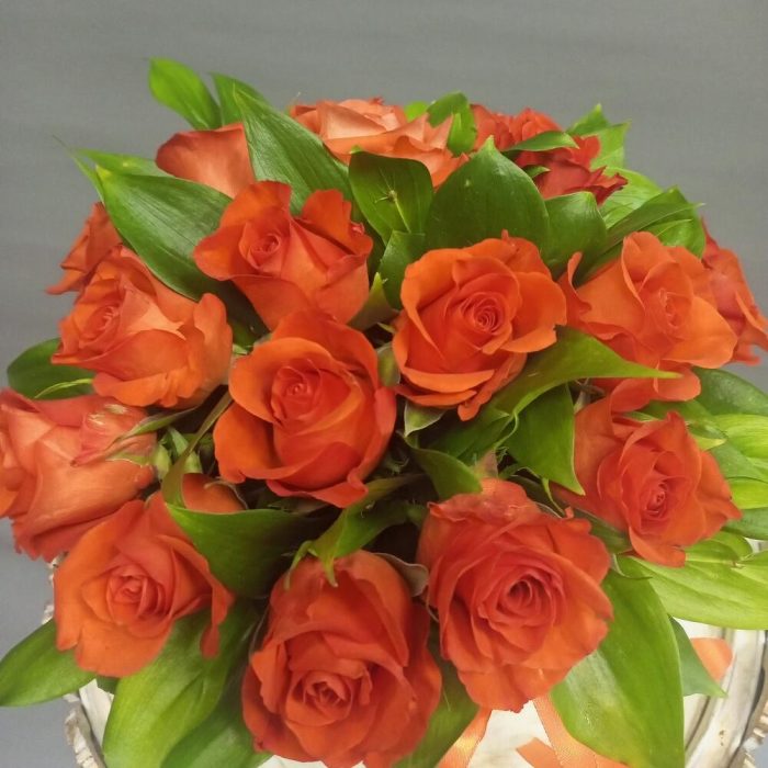 Роза – 17 шт.Зелень – 10 шт.Коробка шляпная – 1 шт.Оазис флористический – 1 шт.