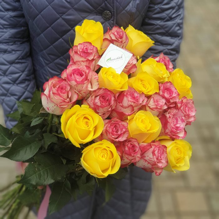 Яркий микс из 25 роз