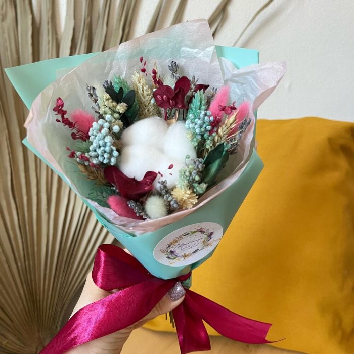 Букет комплимент из сухоцветов с лавандой бирюзово – желтый