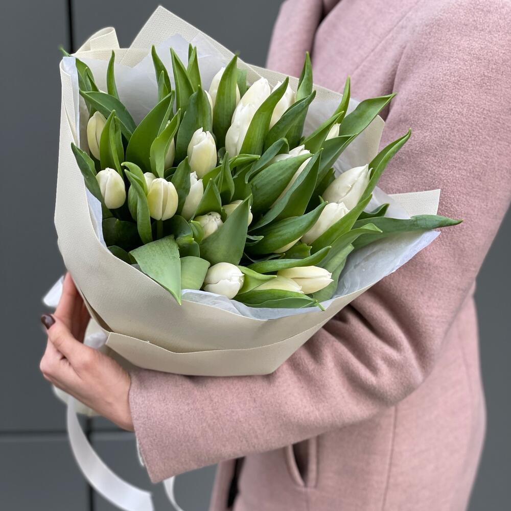 Букет Белые ночи из 25 белых тюльпанов