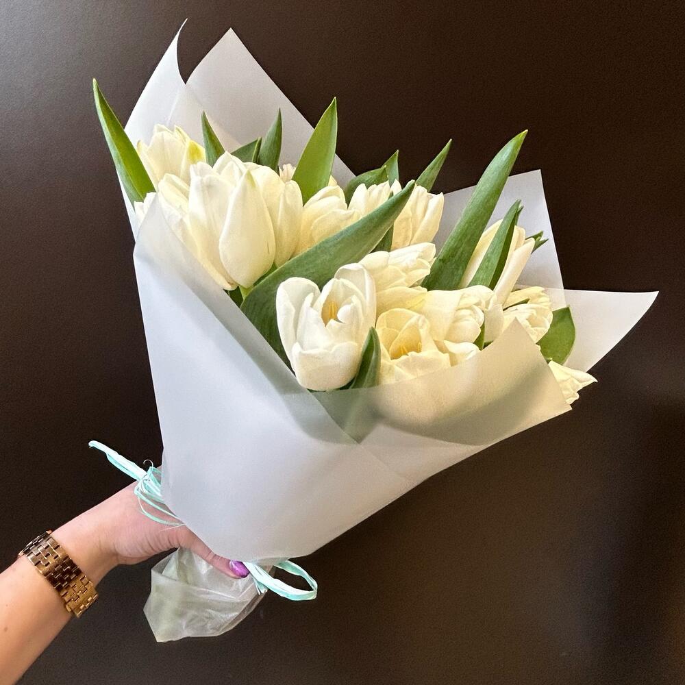 Тюльпан – 21 шт.Лента атласная – 1 шт.Упаковка дизайнерская – 2 шт.