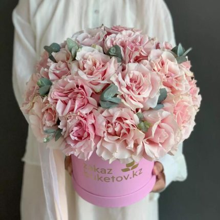 21 голландская роза с эвкалиптом в коробке